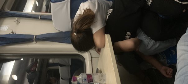 十一点至凌晨两点钟应该是最瞌睡的时候吧,整个车厢里满满的睡意,眼睛都睁不开了,上眼睑和下眼睑在打架,坐着真难受,我无处安放的脚啊、腿啊、头啊,不管摆一个什么样的姿势都难受,想念我的床。虽然三个小时的车程,但是挺难熬的。看看左手边的大叔,插着